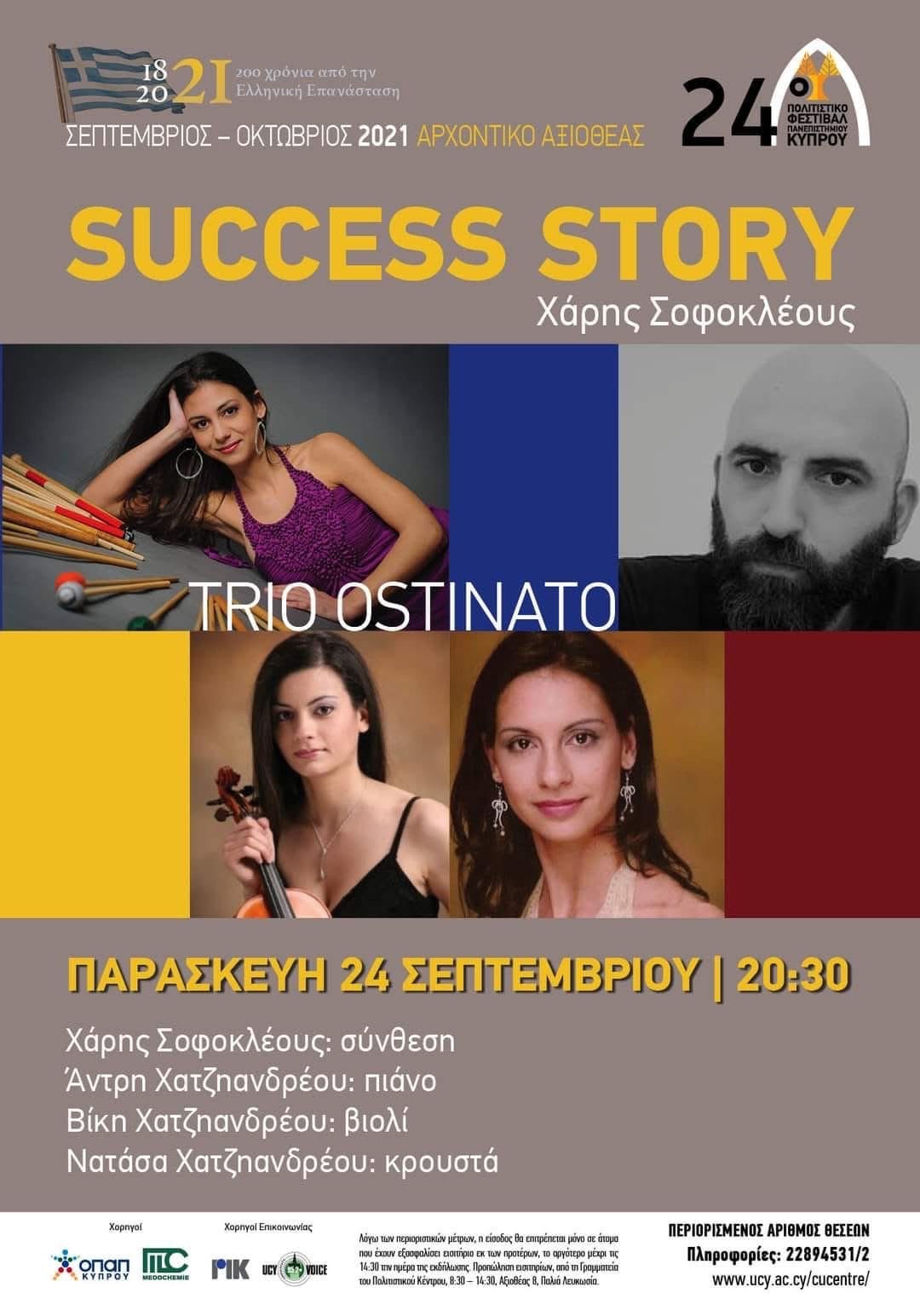 Το Trio Ostinato ιδρύθηκε το 2017 με την υποστήριξη των Πολιτιστικών Υπηρεσιών του Υπουργείου Παιδείας και Πολιτισμού. Από τότε έχει παρουσιάσει πλήθος πρώτων εκτελέσεων έργων, συνεργασίες με συνθέτες από την Κύπρο και το εξωτερικό, και εμφανίσεις σε εξέχοντες πολιτιστικούς χώρους, όπως το Προεδρικό Μέγαρο Κύπρου και το Σπίτι της Κύπρου στην Αθήνα. Οι ερμηνείες τους διακρίνονται για την τόλμη, την εκφραστική τους ελευθερία και την ανανεωτική προσέγγιση του ρεπερτορίου.